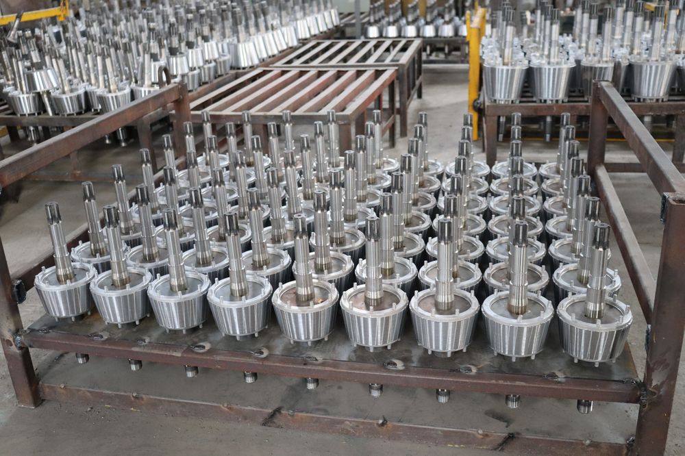 18.5KW雙速電機錐形轉子制動電機,是一種自帶剎車的定轉子成錐形的三相異步電動機。民間多用于起重設備。 YEZ錐形轉子制動電機,是一種自帶剎車的定轉子成錐形的三相異步電動機。其定子內腔和轉子外形都呈錐形的電動機。它具有停電自制動的能力,廣泛應用于電動葫蘆、卷揚機等起重設備?! ″F形轉子電動機的制動裝置由套在電機轉子上的制動彈簧、風扇制動輪和端蓋上的制動環組成。電動機運行時,錐形轉子電動機的氣隙磁場產生軸向磁拉力,壓縮制動彈簧,使風扇制動輪與電機端蓋上的制動環脫開,電機能自由轉動。斷電時,軸向磁拉力消失,轉子在制動彈簧的推力下產生軸向移動,使風扇制動輪壓緊制動環,產生摩擦力,迫使電機迅速停轉并綁住轉子,以防止起吊的重物下落,保障安全。